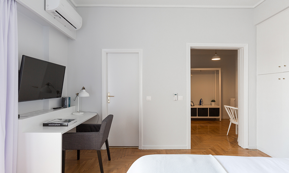 The project’s objective is the total renovation and the interior designing of an one bedroom apartment. The furniture layout in this small apartment was chosen with a specific goal, to capitalize on the view of the Acropolis.